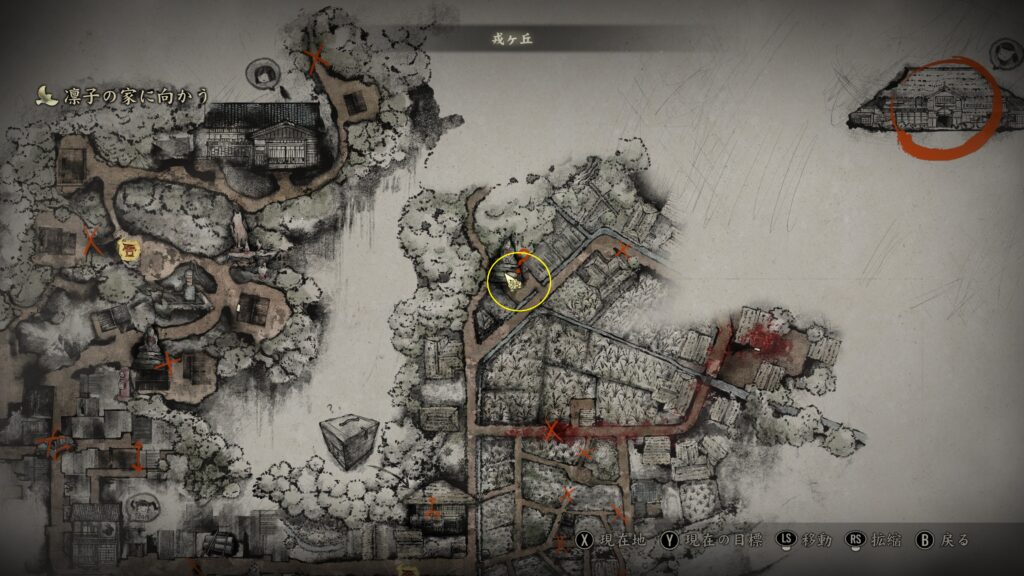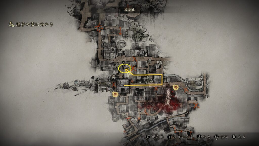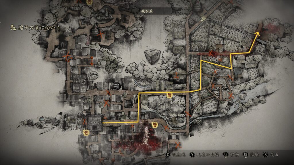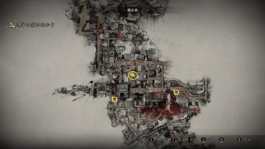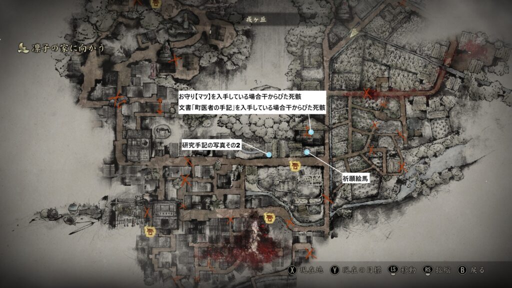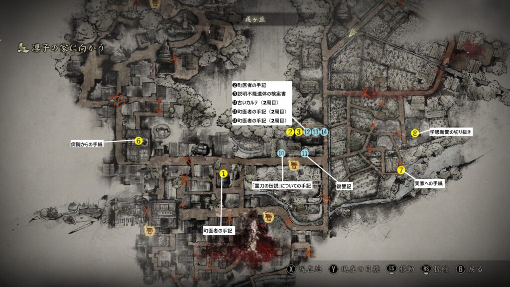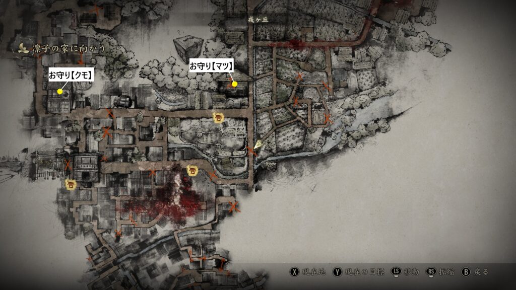 凛子の家はMAP北東に進むイメージだが上記画像のルートの先で「肩掛け鞄」を入手