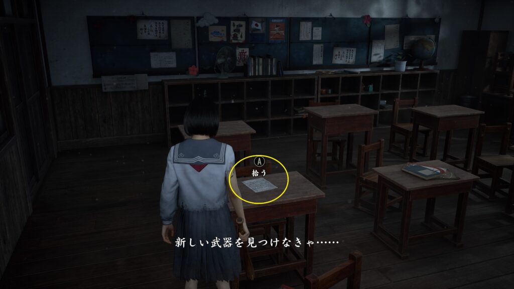 中学3-2の教壇から「旧校舎の鍵」を入手