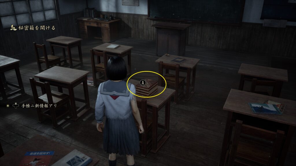教室内の凛子の机を調べると謎解き「秘密箱」