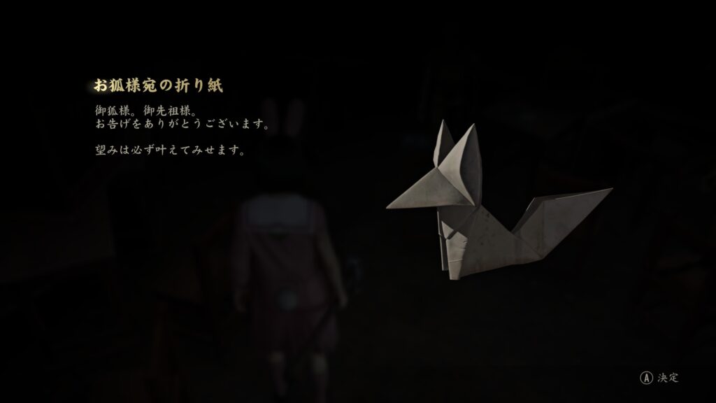 他にも文書「お狐様宛の折り紙」「咲子から雛子への手紙」を入手できる