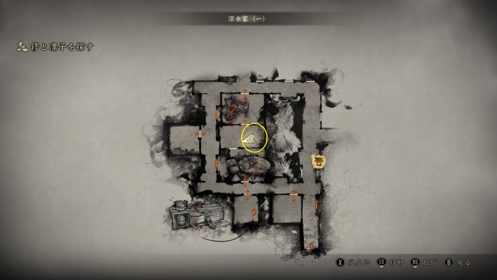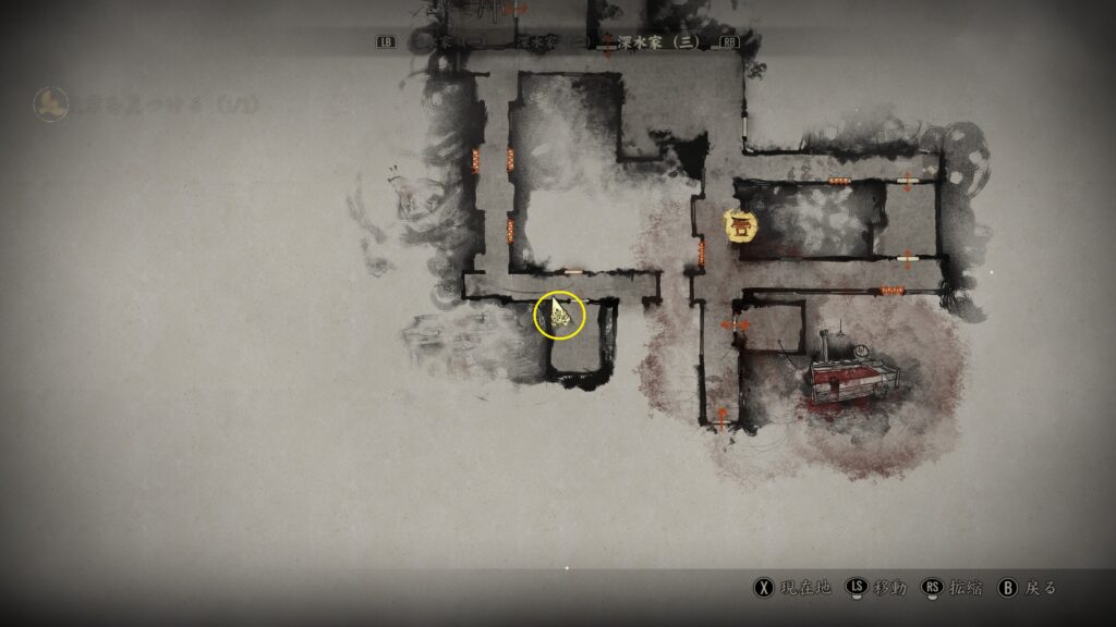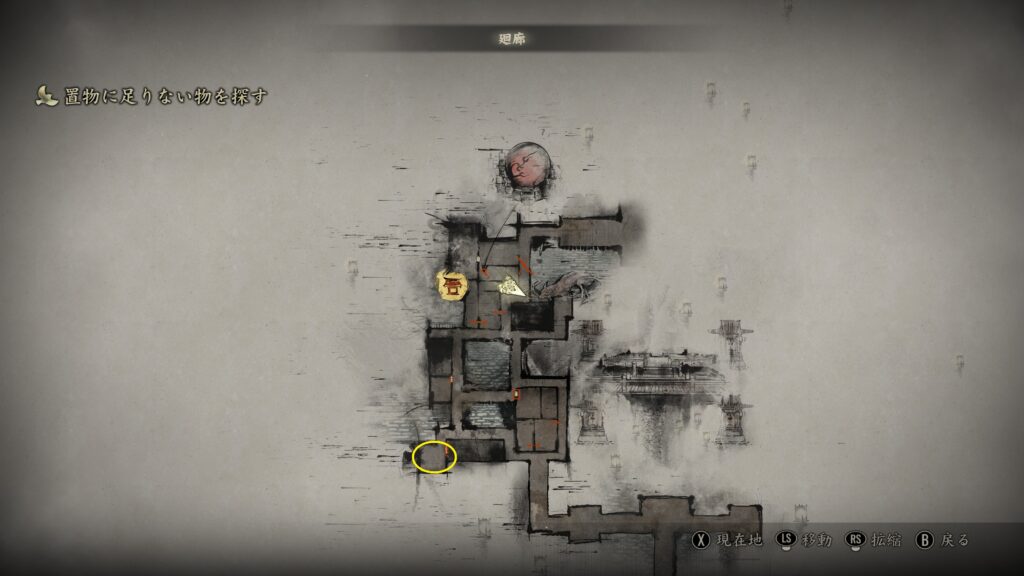 廻廊のMAP南西の扉を「胸飾り」で開いた部屋の中