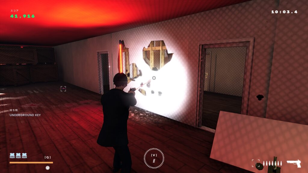 - 鏡に弾丸を跳ね返させて3人の敵を倒す