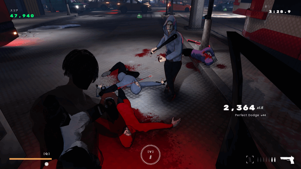 3連撃目がかなり射程距離が短いので2発目を避けたら引っ付くぐらい敵に寄ろう - 環境を利用して3人の敵を殺す