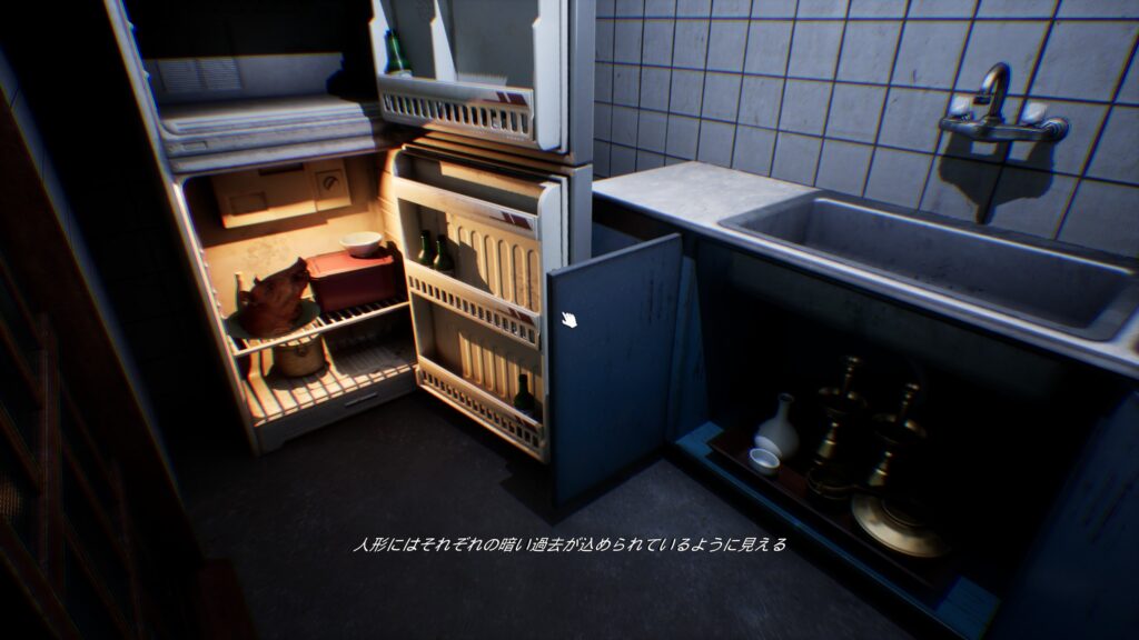 冷蔵庫下段を開けると人形の頭部が転がってこちらを追ってくる